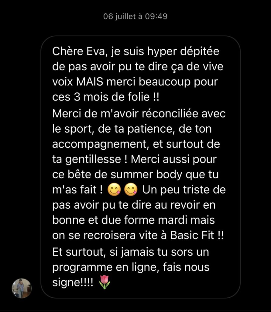 C’est exactement pour ça que le coaching personnalisé existe : tout est adapté à ton niveau, à ton rythme et à tes capacités. Mon but est de te redonner confiance et de te faire progresser sans pression ni frustration !